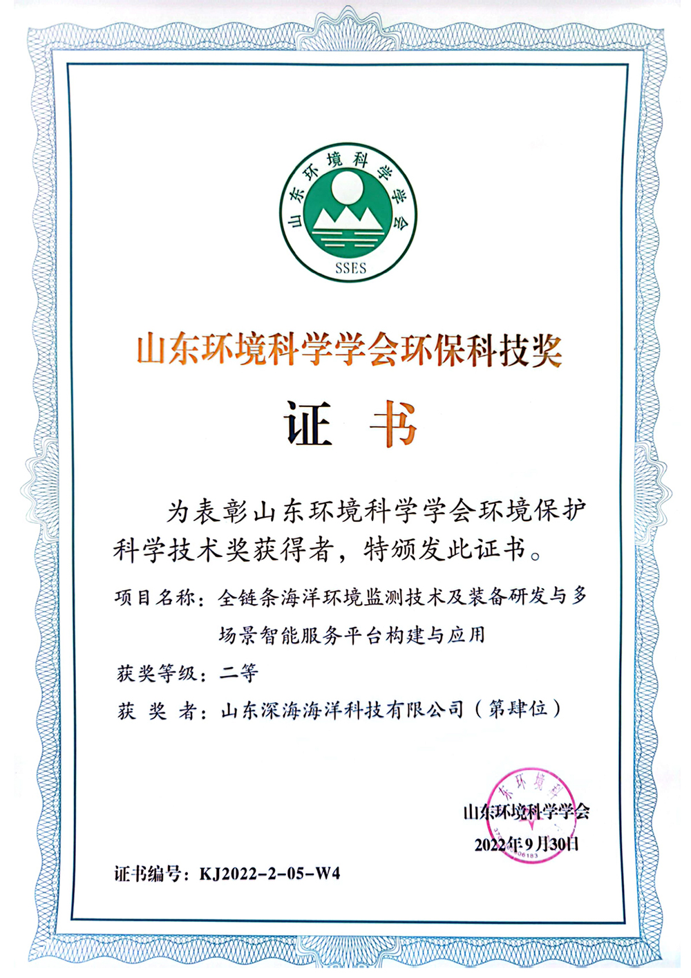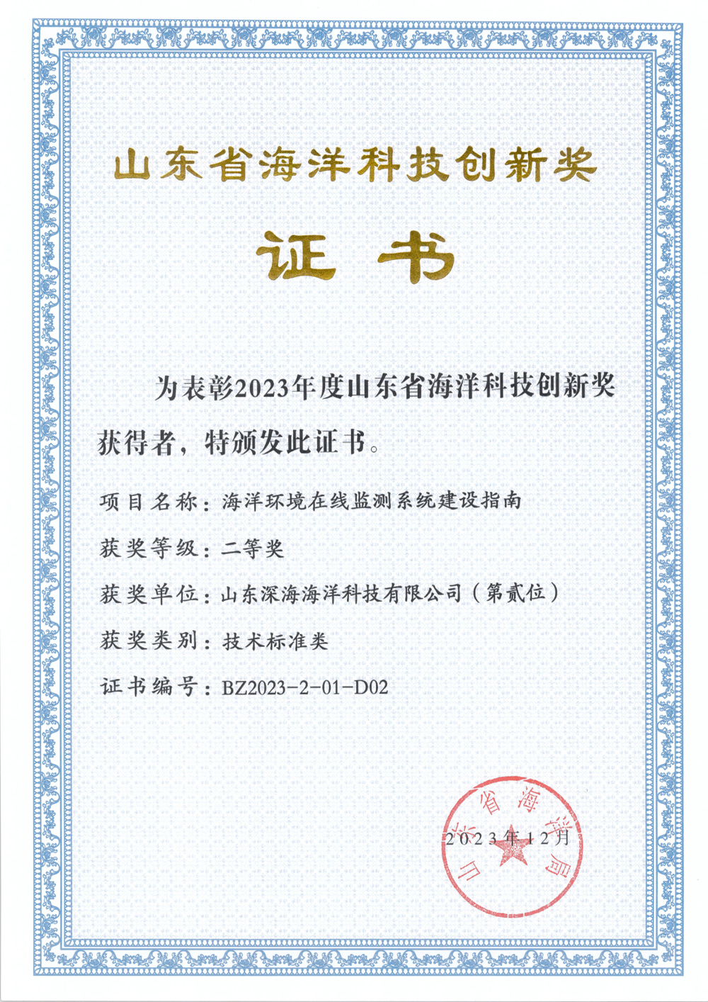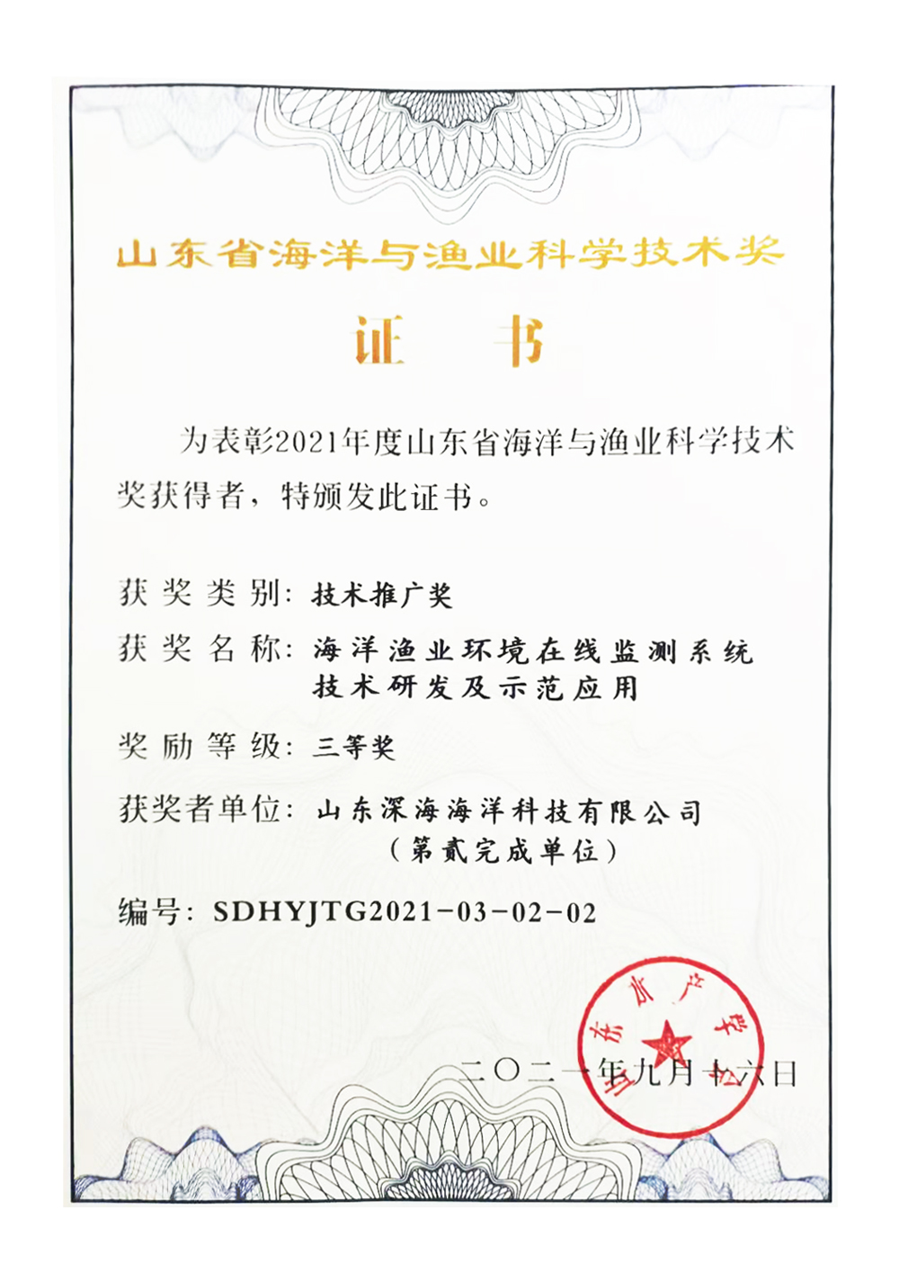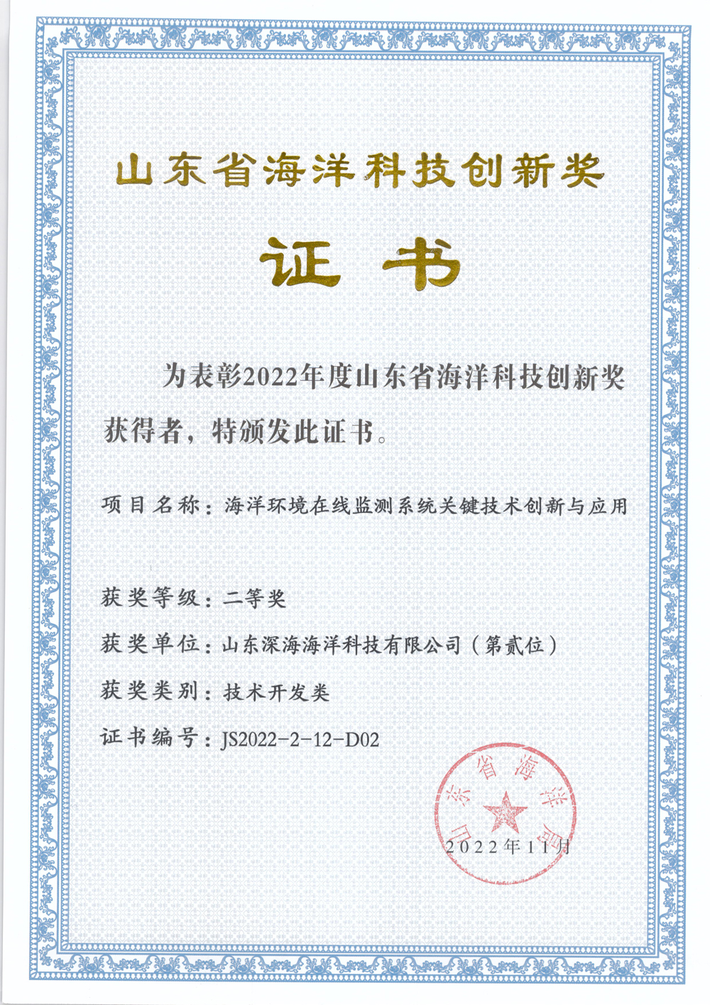 2015 年公司通过ISO9001质量管理体系认证。公司以用户为根本,创新为动力,自主研发为核心,开发出拥有自主知识产权、世界领先的缩微实验室在线监测系统,取得多项发明专利、实用新型专利和软件著作权。并作为“国家海洋局海洋工程咨询协会会员单位”参与制定《海洋环境在线水质监测系统》标准。全资子公司山东深海海洋科技分析测试中心有限公司,属第三方检测公司,目前已有包括海水、地表水、海洋气象、大气降水等10个领域、123个检测方法通过了CMA计量认证。